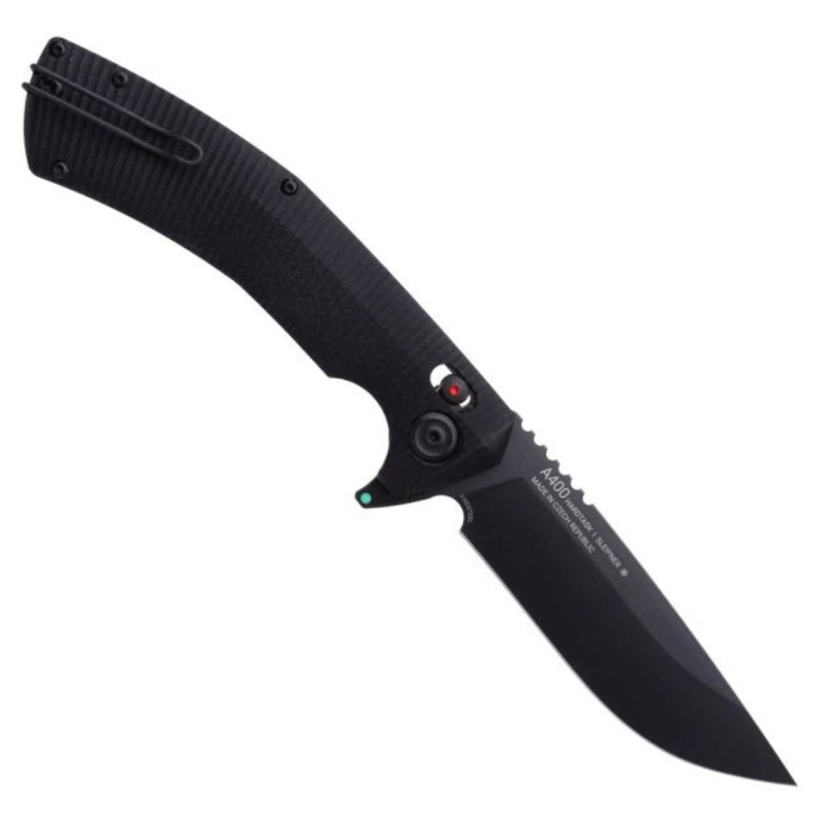 Ergonomikus markolata 3D-megmunkált G10 anyagból készült, és acél betétekkel van megerősítve a nagyobb szilárdság érdekében. Az ANV Alock, a legnépszerűbb zármechanizmusuk, megbízható biztonságot nyújt mind nyitott, mind zárt állapotban. Az A400 emellett figyelemfelkeltő kontrasztos távtartókat és egy diszkrét drótcsipeszt is tartalmaz a biztonságos zsebben hordozáshoz.