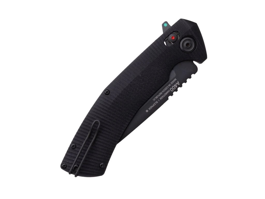 Az Acta Non Verba megalkotta az M200 Hard Task kés egyedi karakterét egy masszív, összecsukható EDC modellben. A penge kriogén módon edzett Udeholm Sleipner acélból készült, amely 60 HRC keménységgel büszkélkedhet, és egy rendkívül tartós DLC réteggel van bevonva. A golyóscsapágyas mechanizmusnak és a kényelmes flippernek - amely az ANV Lumidot jellegzetességét hordozza - köszönhetően a penge simán és gyorsan nyílik. Az A400 megtartja a tűzgyújtó bevágást, amely megtalálható a fix pengés elődjénél, az M200-nál.