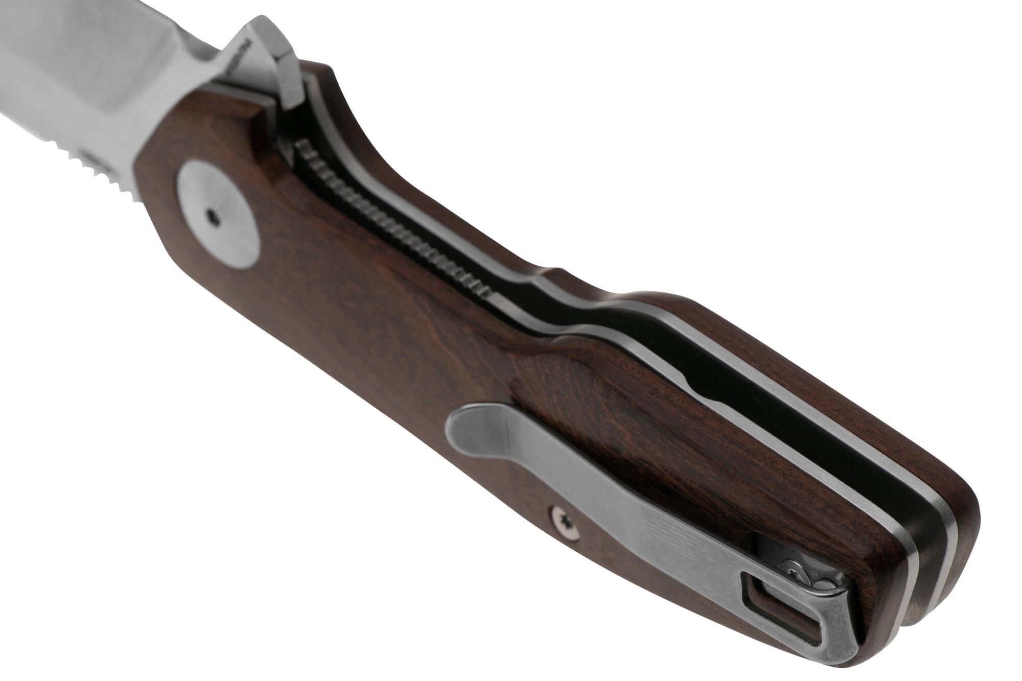A küldetés: a stresszes mindennapokat némi megérdemelt kikapcsolódással finomítani. A követelmény: karakter! Egy hősies feladat, amelyet a Boker Arbolito Heroína (spanyolul hősnő) bátran vállal, és mint sokoldalú zsebkés, hősiesen összhangba hozza az EDC, a természet és a vadászat területeit. Az impozáns penge, amelyet a kiváló élmegtartású 14C28N acélból készítettek, simán és finoman nyílik a flipper segítségével, és a megbízható linerlock tartja biztosan a helyén.