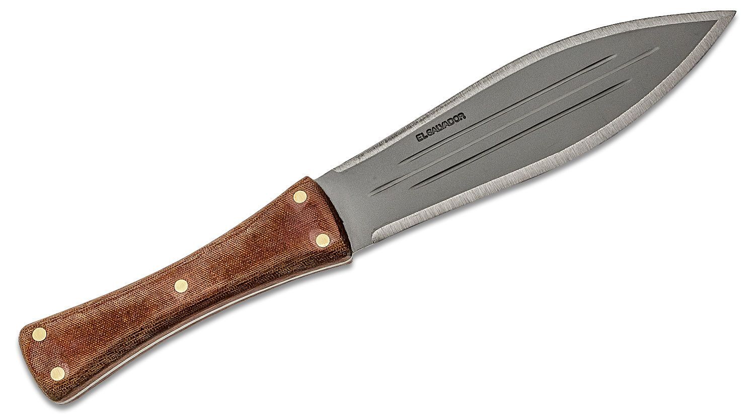 A kétoldalas pengével ellátott penge 1075 szénacélból készült. A nyél tartós és könnyű mikarta anyagból készült.
