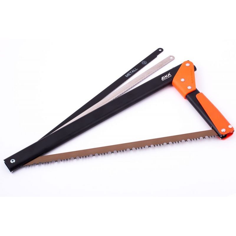 Az EKA 21 Combi Saw Orange kompakt fűrész 3 különféle fűrészlapot tartalmaz a fűrész polimer narancssárga fogantyújába. Fa, fém vagy hús fűrészelésére alkalmas. Hajtogatáskor könnyű hordozni. A fűrészek Sandvik 12C27 acélból készülnek. Kempingre és túrázásra alkalmas.