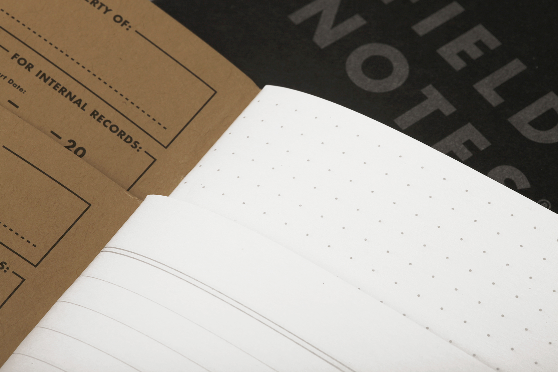 A Field Notes strapabíró és rugalmas, úgy tervezték, hogy túlélje a nadrágzsebben viselést. Erős, három tűzőkapcsos nyeregtűző eljárás köti össze őket. A borító elejére felírhatja elérhetőségét, és humorosan jelezheti, hogy az elveszett könyvet visszaadó személy jutalomban részesül-e. A belső hátsó borító a "gyakorlati" alkalmazásokat sorolja fel a notebookhoz, például #03, "Ninja Skills Acquired". A notebookokat az Egyesült Államokban gyártják és nyomtatják.