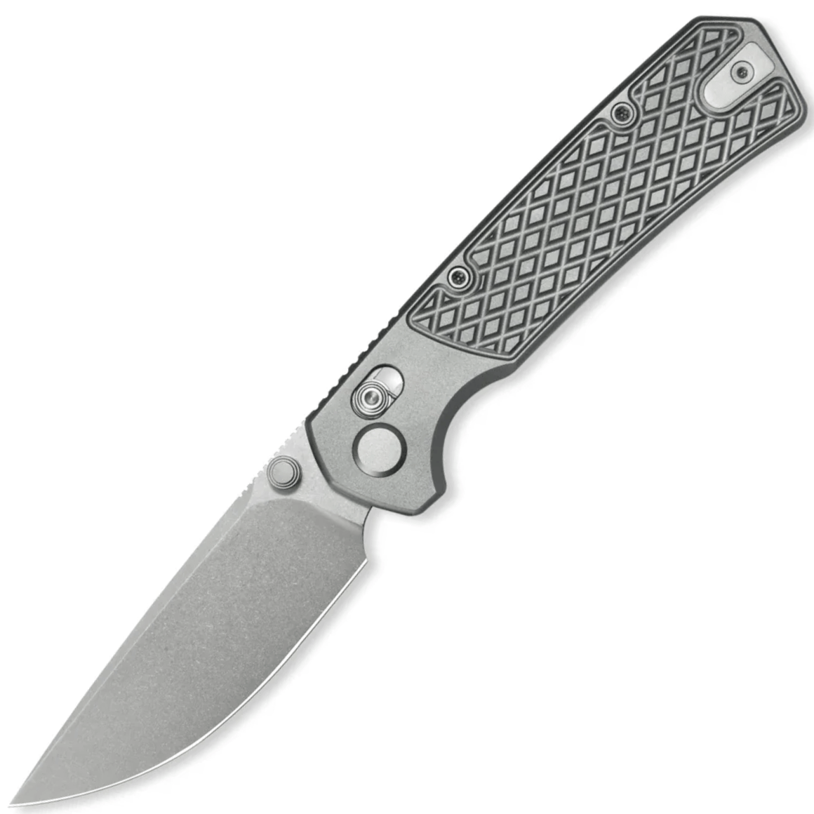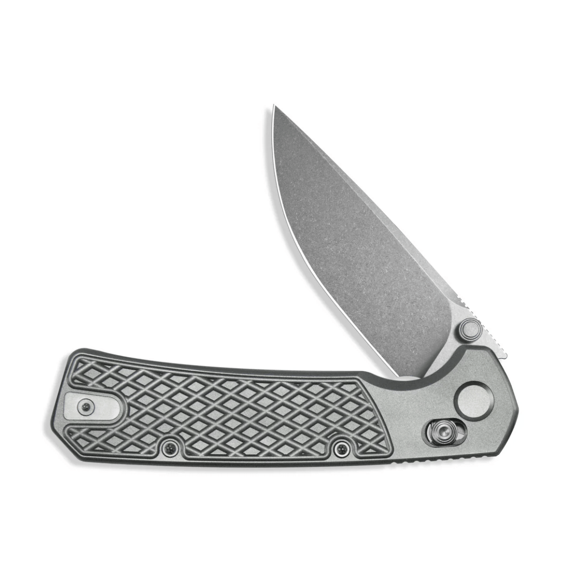 A markolat Stonewashed szürke 6AL4V titánból készült, textúrával a jobb fogás és tartósság érdekében. A zsebklip titánból van, és a jobb oldali, heggyel felfelé történő hordásra van beállítva.