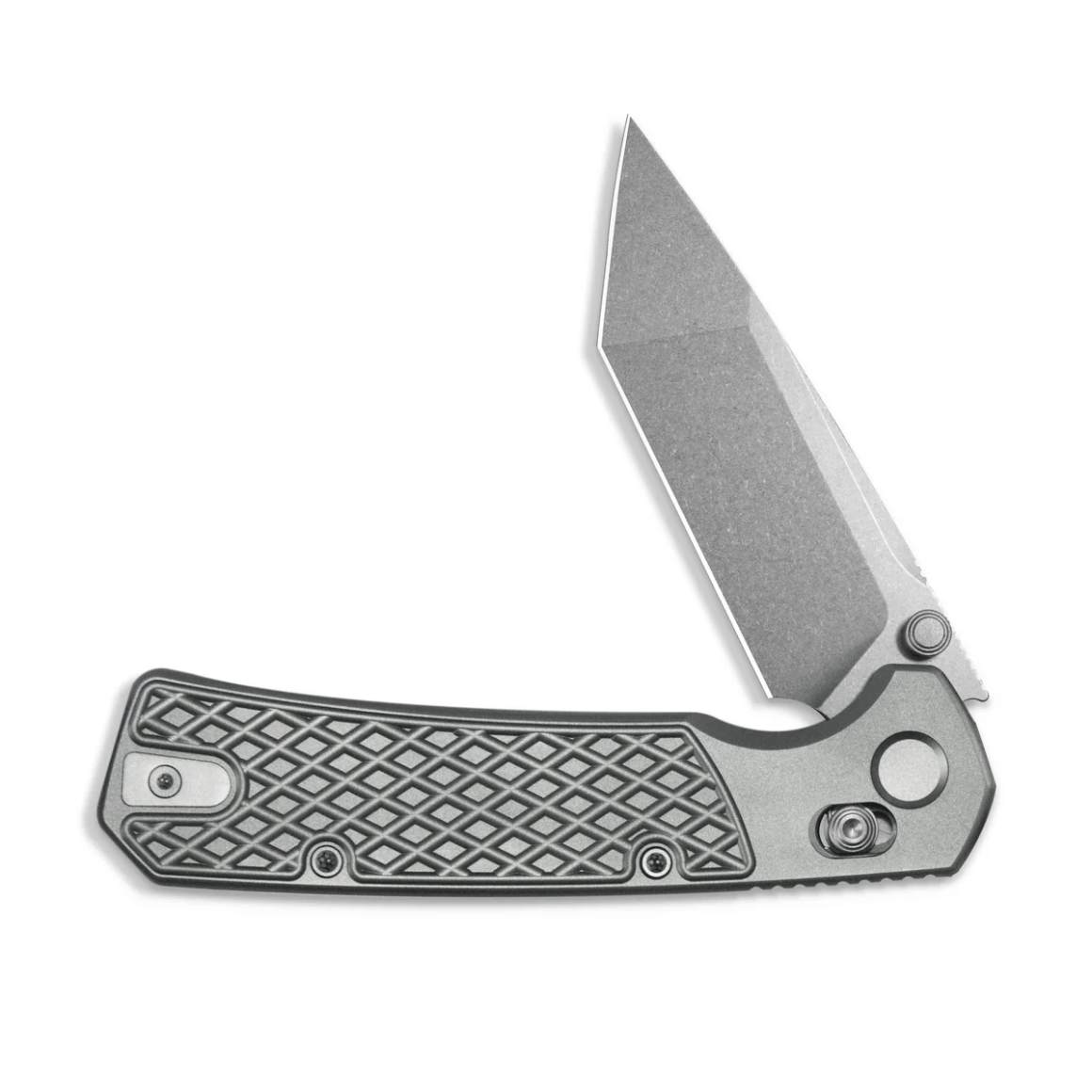 A markolat Stonewashed szürke 6AL4V titánból készült, textúrával a jobb fogás és tartósság érdekében. A zsebklip titánból van, és a jobb oldali tip-up hordásra van beállítva.