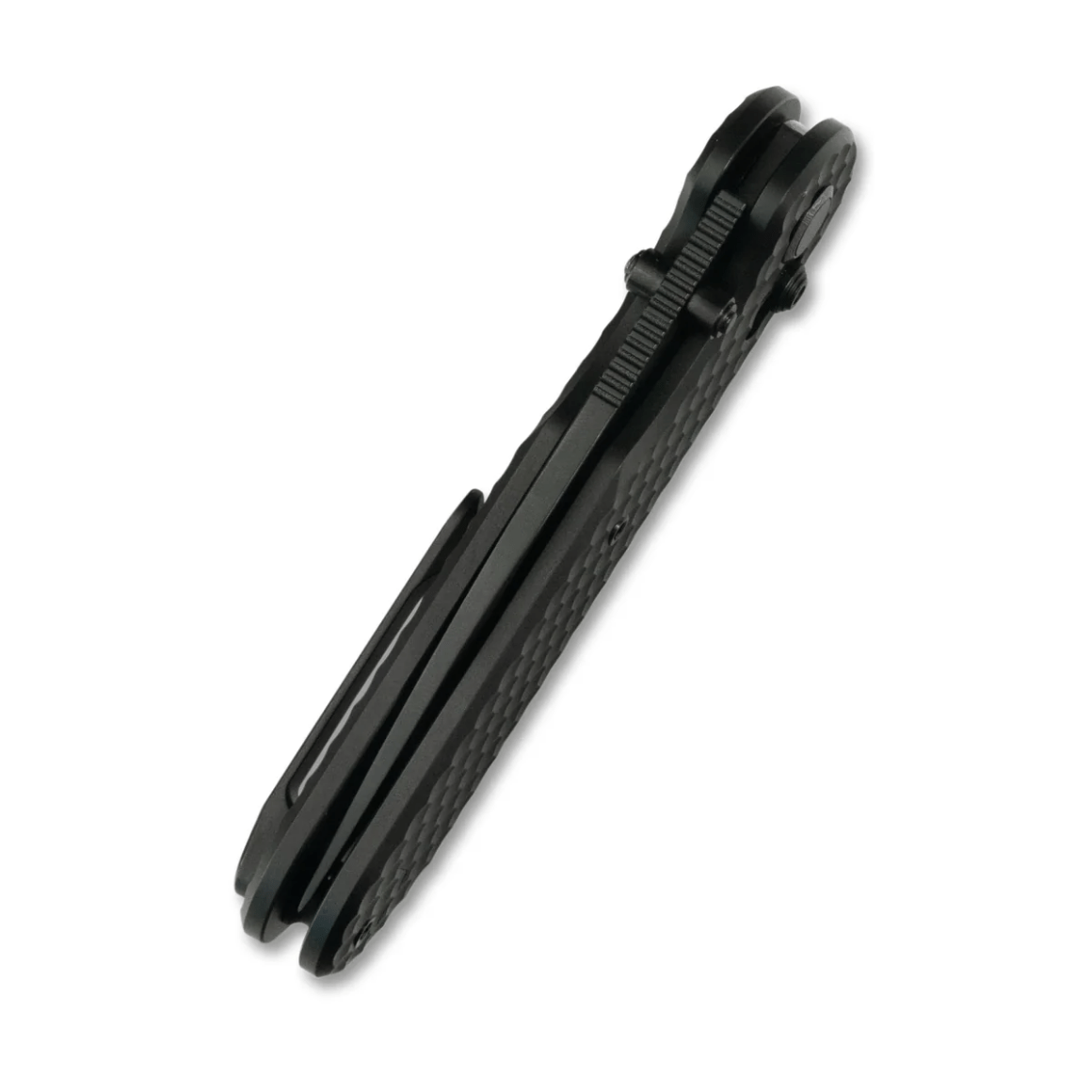 A markolat fekete 6AL4V titánból készült, méhsejt textúrával a jobb fogás és tartósság érdekében. A zsebcsipesz titánból készült, és a jobb oldali tip-up hordásra van beállítva.