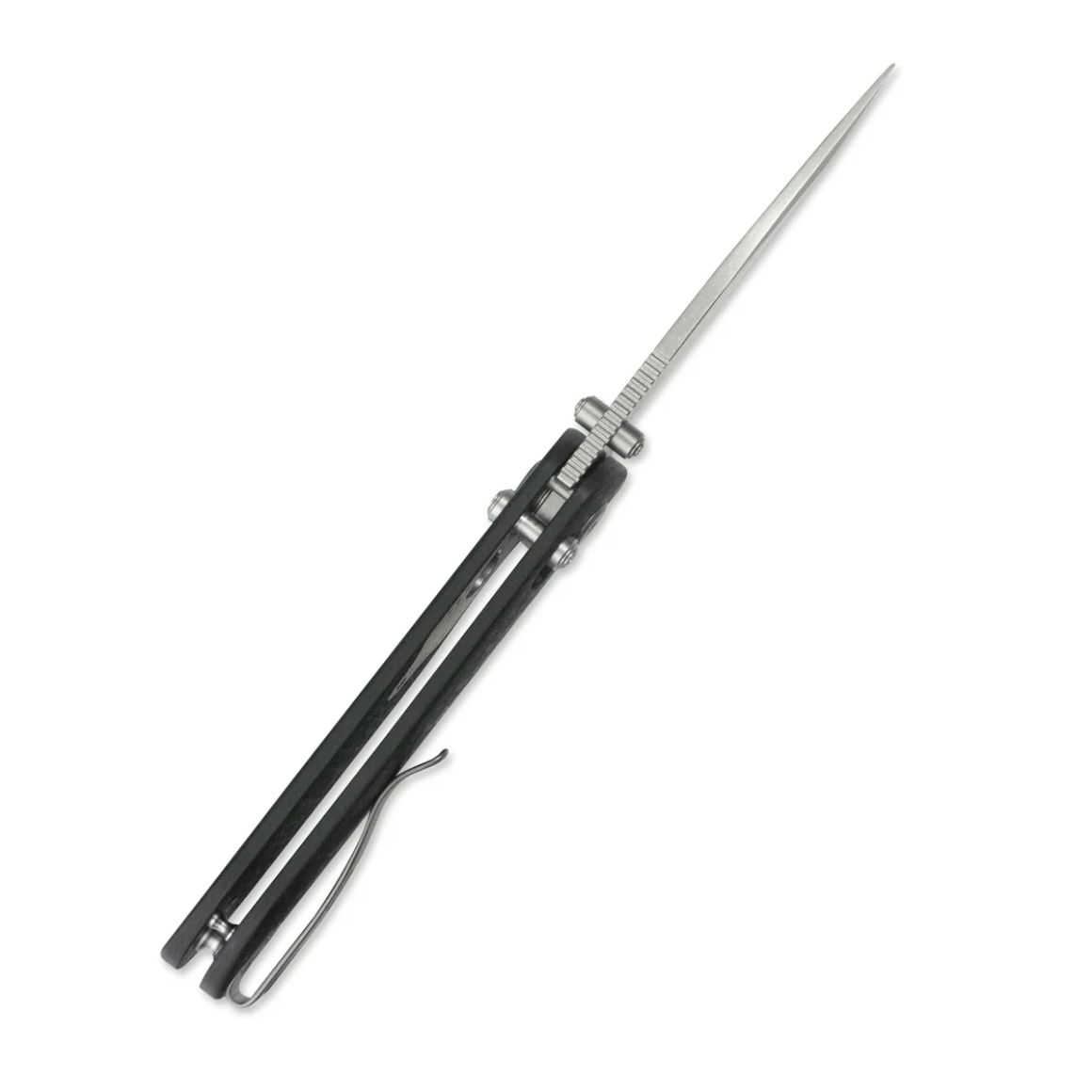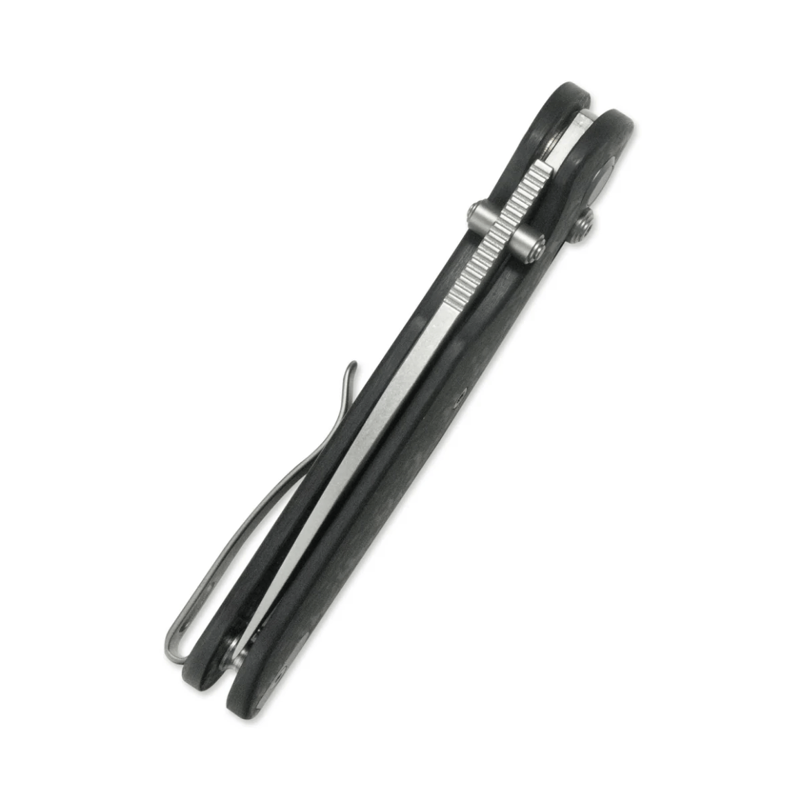 A markolat fekete Carbon Fiber-ből készült, amely hihetetlenül erős anyag. A szénszálakat gyakran először szövik, majd nagy nyomás alatt erős gyantába préselik. Az eredmény egy szuper erős, könnyű anyag. A zsebklip titánból készült, és a jobb oldali tip-up hordásra van beállítva.