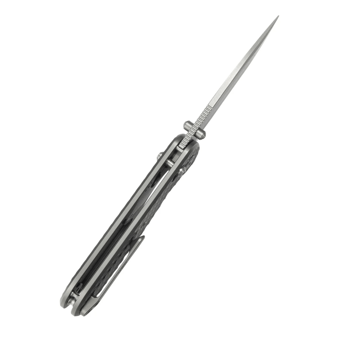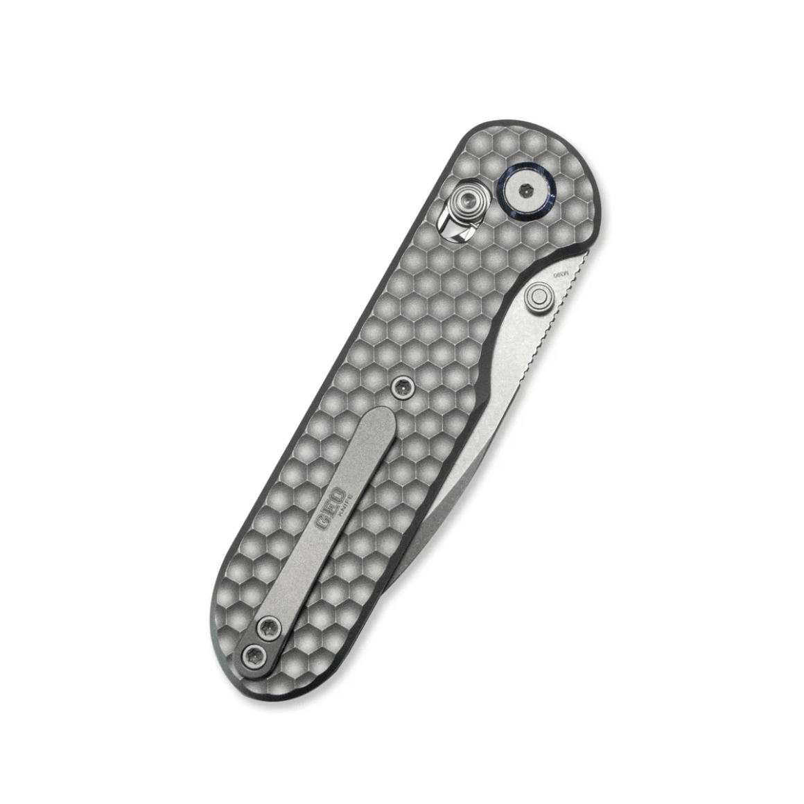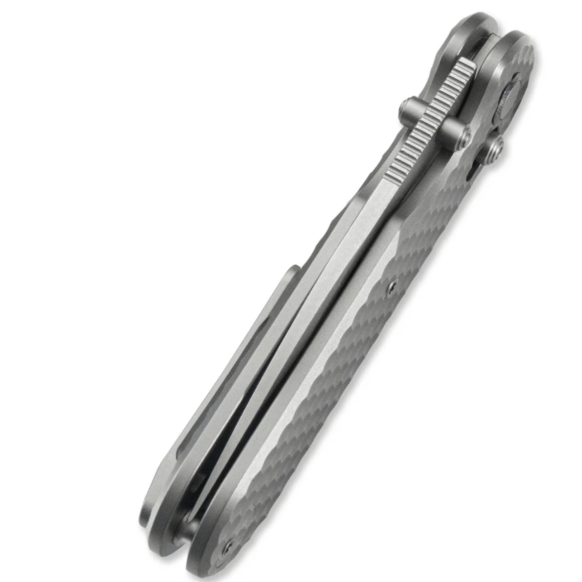 A markolat 6AL4V titánból készült, méhsejt textúrával a jobb fogás és tartósság érdekében. A zsebklip titánból készült, és a jobb oldali tip-up hordozásra van beállítva.