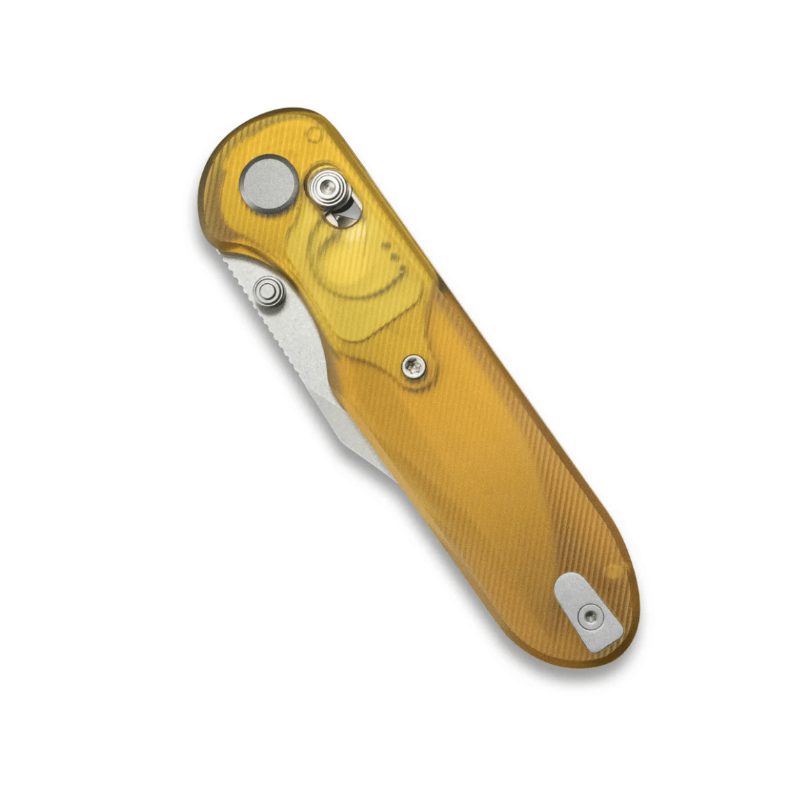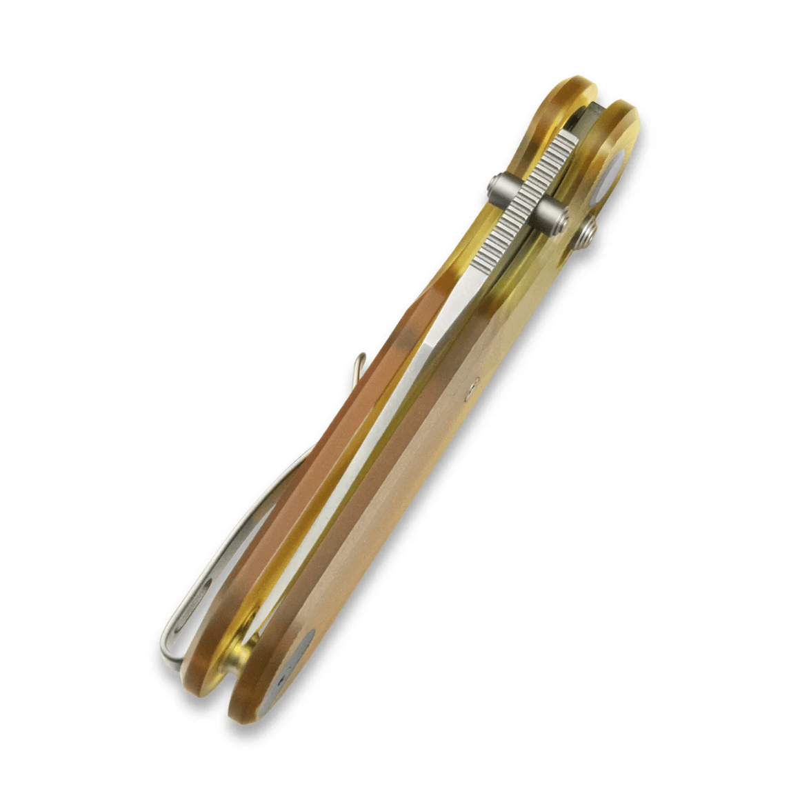 A markolat tartós Ultem anyagból készült, amely híres kivételes szilárdságáról, hőállóságáról és könnyű érzetéről. Félátlátszó borostyán színű felületet kínál, amely merész, modern megjelenést kölcsönöz. A zsebklip titánból készült, és a jobb oldali tip-up hordásra van beállítva.