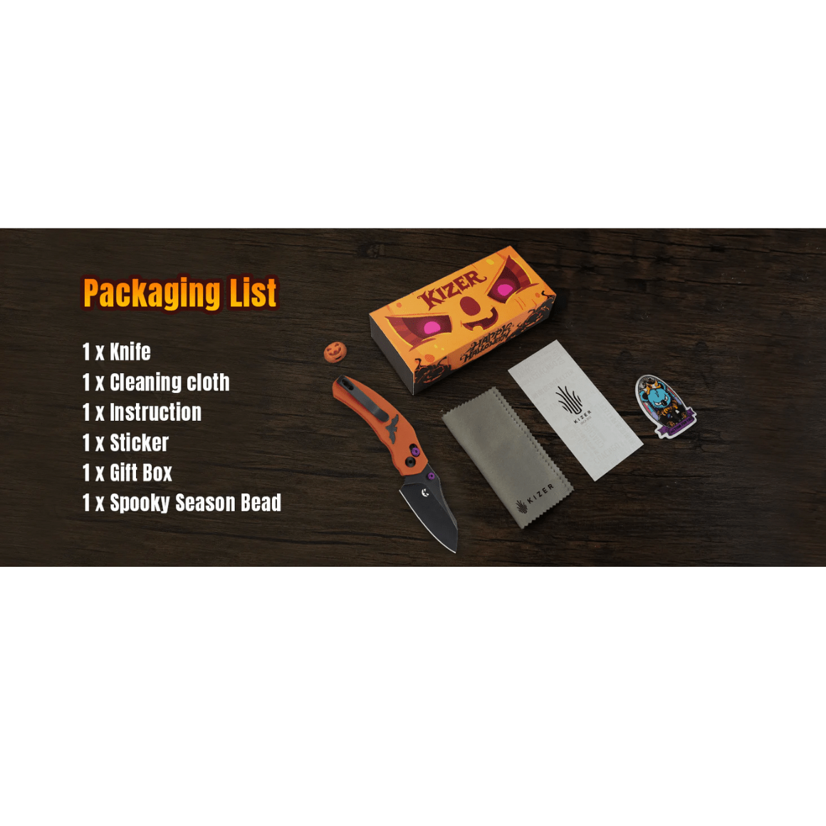 Kizer Mini Bulldog Nitro-V G10 V3672SHW1 - Halloween kiadás zsebkés, amelyet O.SHO tervezett. Ez a merész és funkcionális EDC kés ideális mindennapi használatra és gyűjtők számára egyaránt.