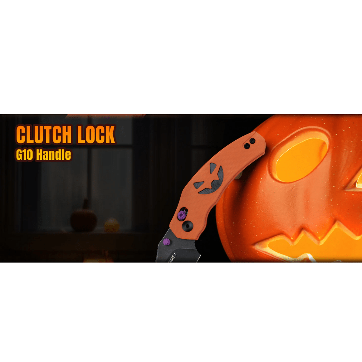 A markolat fekete és narancssárga G10-ből készült, faragott Jack-O'-Lantern tök dizájnnal. A G10 egy üvegszálból és szintetikus gyantából készült kompozit anyag. Finom textúrájának köszönhetően a G10 kellemes fogású és kiváló tapadást biztosít.
