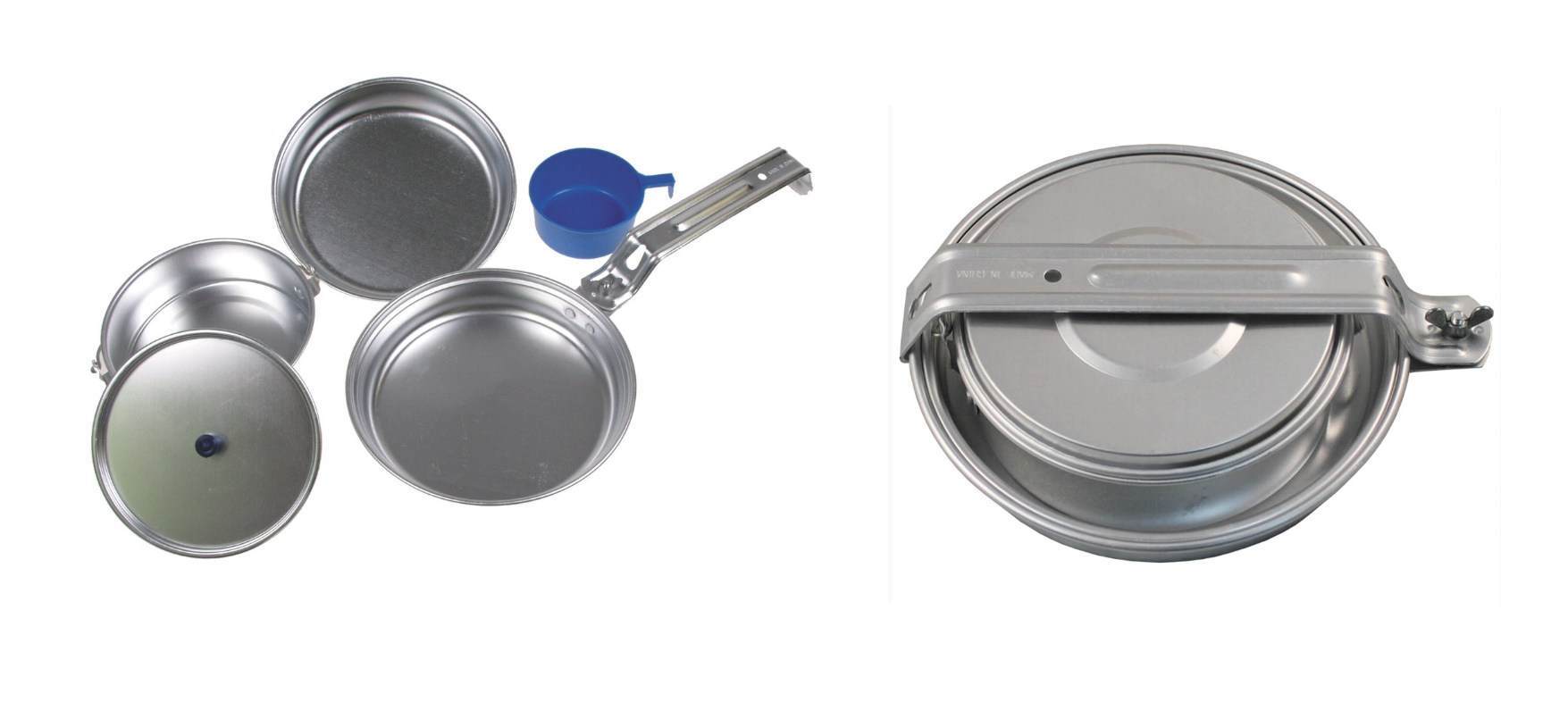Alumínium főzőkészlet 1 fő részére. Ez a főzőkészlet ideális minden túrázáshoz, vadászathoz és egyéb eseményekhez. A kis csomagméret azt jelenti, hogy minden hátizsákba belefér.