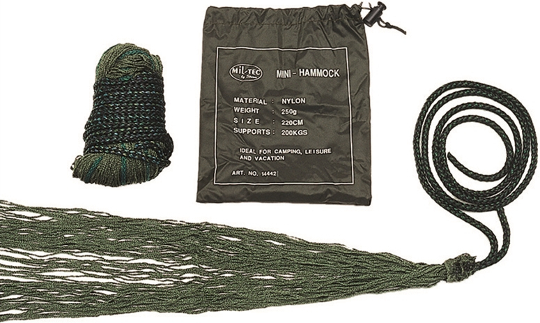 Minihangmatte függőágy a Mill-Tech cégtől. Ideális kempinghez, vadászathoz vagy kerthez. A hajtogatás után kevés helyet igényel és nagyon könnyű.