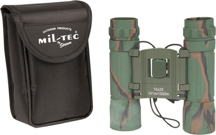 Összecsukható távcsövek 10 x 25. A 4-8 Dptr tartomány fókuszálása, beleértve a jobb lencsét is, további beállítást igényel (± 4 Dptr). A távcsövek ruhával vannak ellátva, hogy tisztítsák a tokot és a lencsét. A burkolatot csipkékkel lehet rögzíteni az övhez vagy a felszereléshez vagy a nyakhoz. Beleértve a tokot (100% nylon).