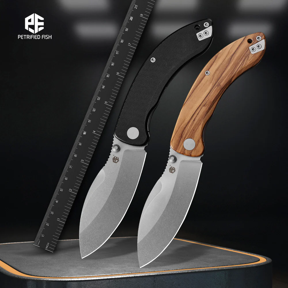 A Petrified Fish PFB06 Zonda Nessmuk stílusú pengével rendelkezik, amely 14C28N rozsdamentes acélból készült, ergonomikus G10 vagy olíva fa markolattal. A penge könnyedén nyitható a thumb stud segítségével. Kinyitás után az ujjaid biztonságban lesznek a liner locknak köszönhetően. A kés zsebcsipesszel érkezik, amely mindkét oldalra átszerelhető.