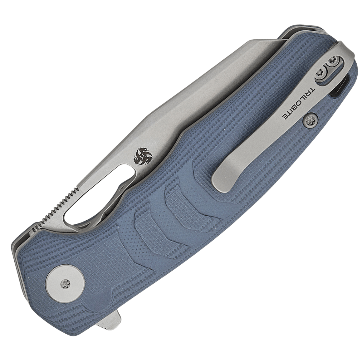 A Petrified Fish PFE17 Trilobite Alessandra De Santis tervező elképzelését tükrözi, amely a masszív, mégis elegáns dizájnt ötvözi. Ez a sokoldalú flipper zsebkés egy 3,03 hüvelykes stonewashed 14C28N reverse tanto pengével rendelkezik, amely kiváló élmegtartást és erős hegyet biztosít a precíz munkához. A button lock megbízható pengestabilitást nyújt, míg a zárt kerámia golyóscsapágyak gyors és sima nyitást tesznek lehetővé. A kék G10 markolatpanelek erős fogást biztosítanak, amelyet egy deep-carry rozsdamentes acél zsebklip egészít ki a diszkrét, kétkezes viselés érdekében. A penge kivágása további nyitási lehetőséget kínál, így ez a kés ideális választás mindennapi használatra.