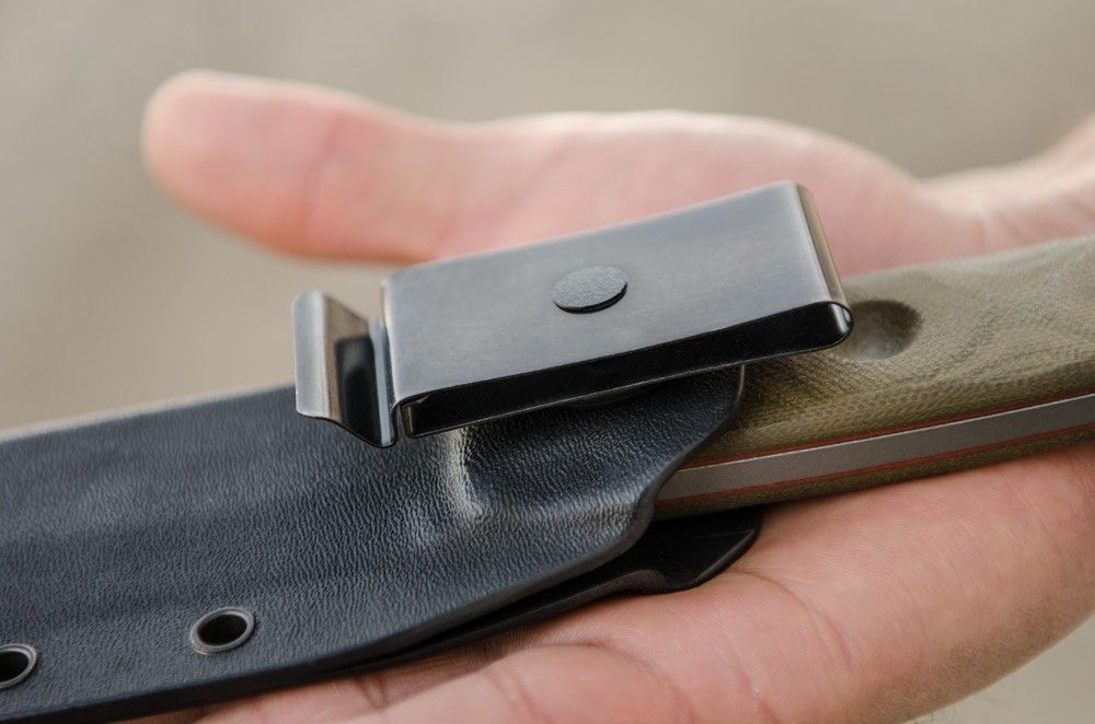 A full-tang felépítésű penge 1095-ös, magas széntartalmú acélból készül. A formázott fogantyú tartós mikarta anyagból készült. A fogantyú végén van egy nyílás a zsinór számára.