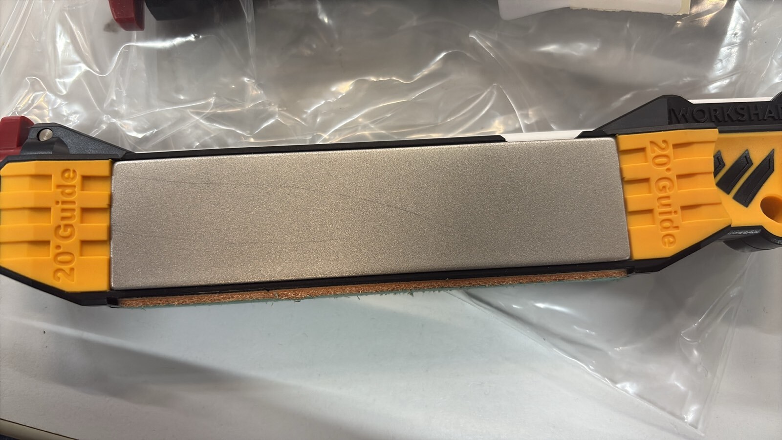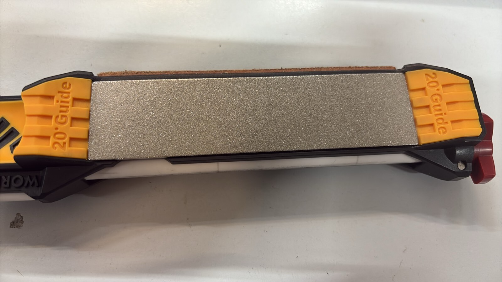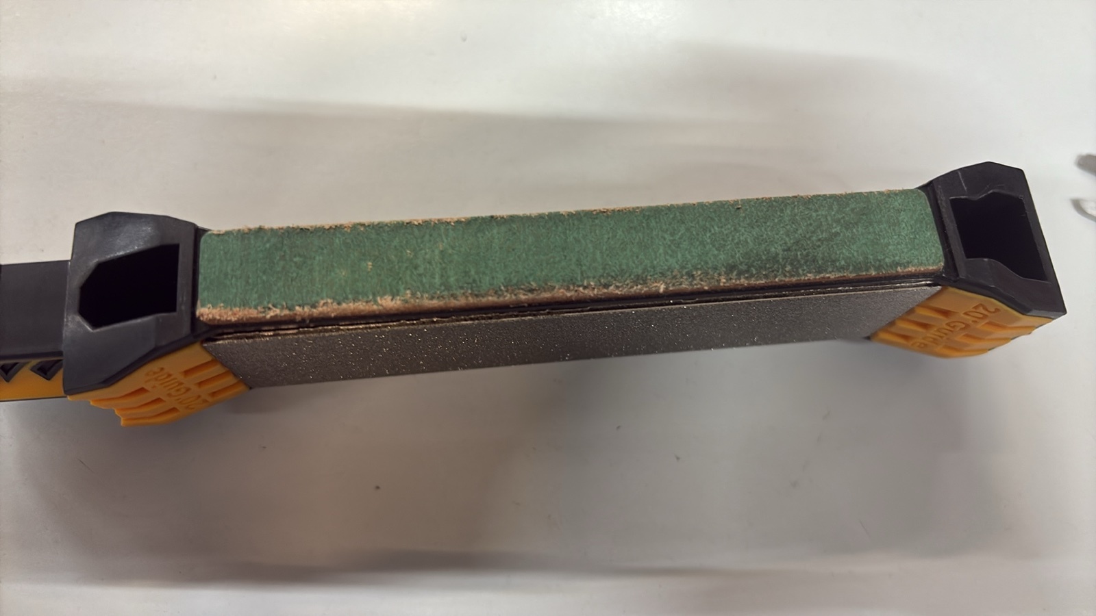 Kézi csiszoló, teljes hossza: 17 cm, gyémántlemezek, durva, finom, kerámia botokkal, klasszikus a finom csiszoláshoz, hosszabb hornyokkal horgokhoz, durvabb és finomabb oldalak. Bőrcsík mikrocsiszoló anyagból. Univerzális csiszoló bármilyen késhez.