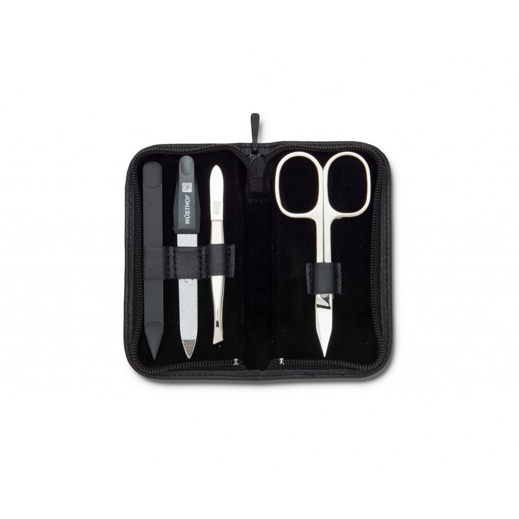 Wusthof körömápoló tok, finom bőrből, melegvörös hangon és finom bársony belsejében. Tartalmazza a köröm- és bőr ollókat, csipeszeket, tisztítószereket és bőrcsökkentő eszközöket. A szerszámok nikkelezett, korrózióval védettek és tartósak, tökéletes felületű és ideális kialakításúak. Az összes Wüsthof-alkatrész kiválasztott anyagból készül, nagyon gondosan feldolgozva és gyártva a Solingen legjobb hagyománya szerint.