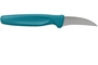 Különösen hasznos a lekerekített zöldségek és gyümölcsök tisztításához. Ez a kicsi praktikus kés, más néven vágókés, rövid, ívelt csőr alakú pengével, megkönnyíti az olyan élelmiszerek hámozását, mint a burgonya vagy az alma. A kés penge szövete nagyon pontos tanácsokat ad, ezért ideális segítő a gyümölcsök és zöldségek faragásához és díszítéséhez.