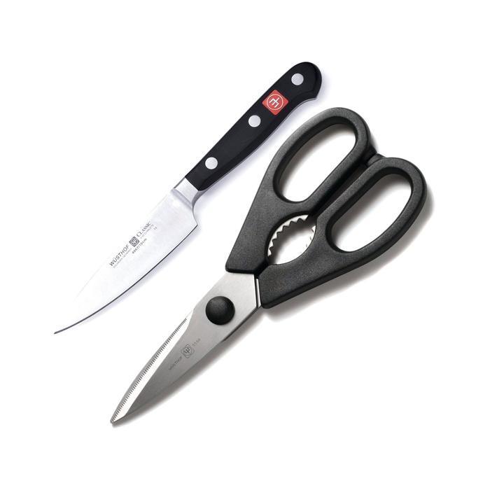 Egy sor praktikus zöldségkést és praktikus konyhai ollót a Wüsthof-tól. A növényi kés (a kés hossza 8 cm) a legváltozatosabb kés, mogyoróhagyma, hagyma és gyógynövények aprítására, valamint zöldségek tisztítására és szeletelésére. A konyhai olló (21 cm hosszú) minden háztartásban pótolhatatlan segítő.
