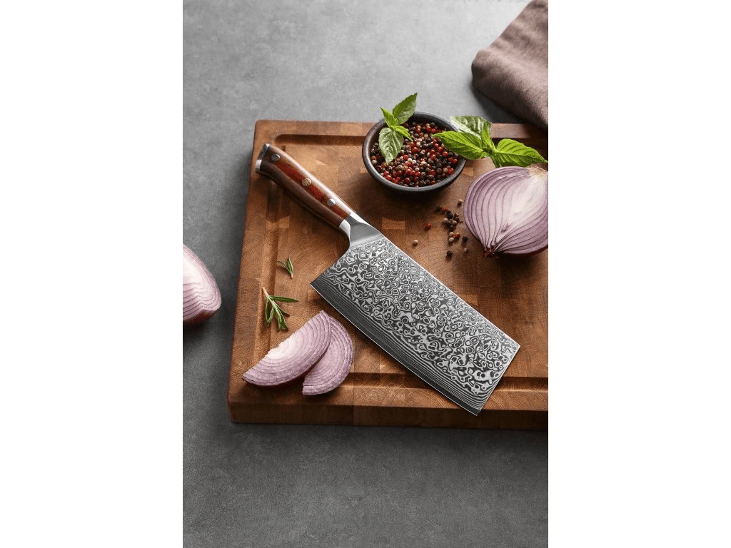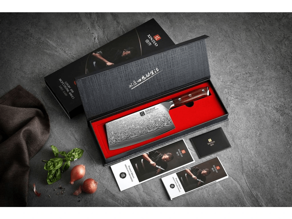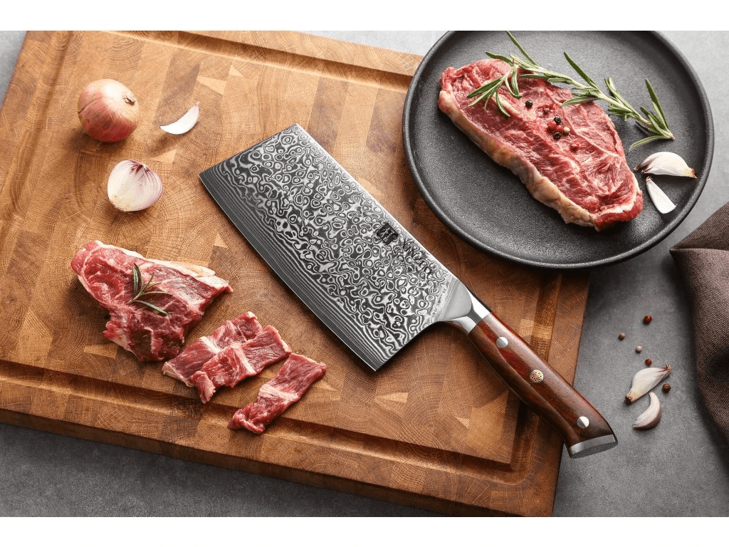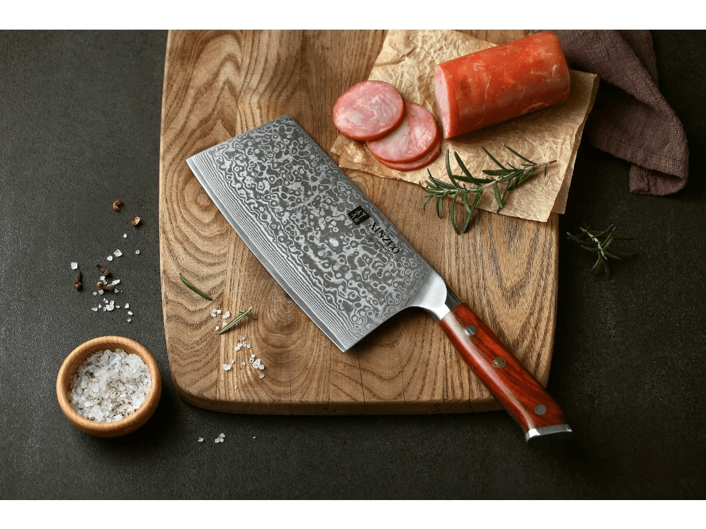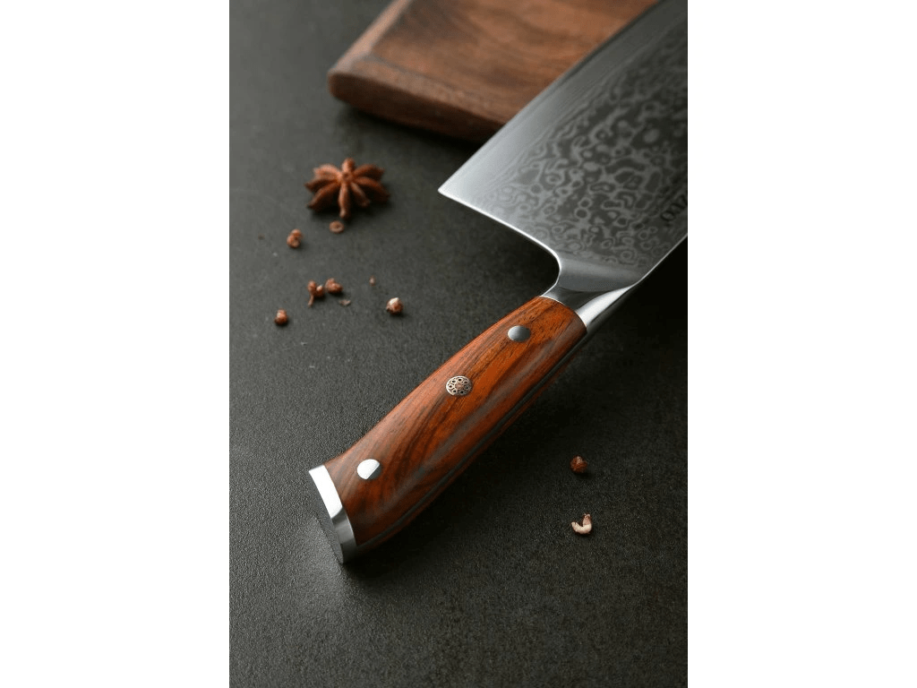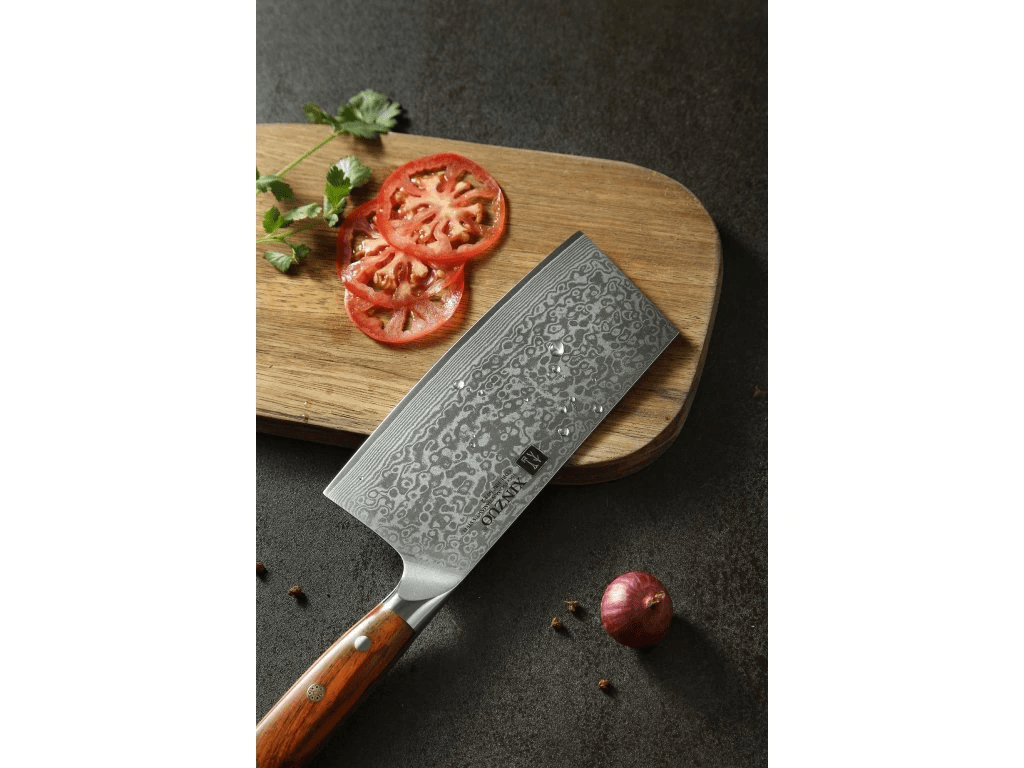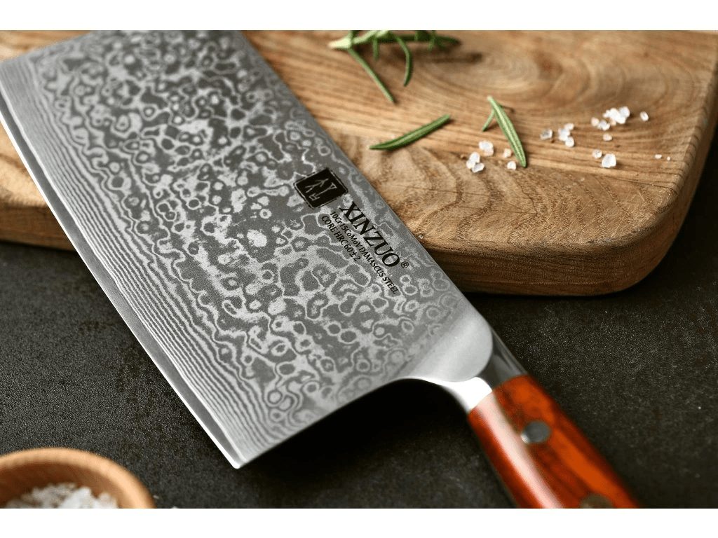 XINZUO B13R 7 hüvelykes kínai bárd természetes rózsafával, hármas szegecsekkel, 67 rétegű damaszkusz